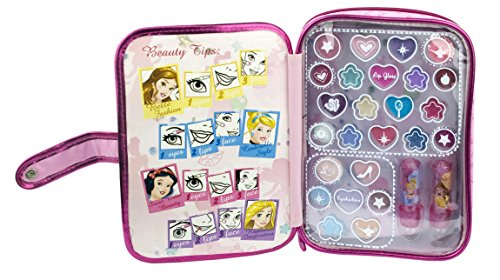 Get your very own beauty tips from Disney Princesses. If you want Cinderella?s style, Belle?s fashion, Snow White?s beauty tips or Rapunzel?s Inspiration, this makeup organiser is fantastic to get the Princess look from your very own beauty experts. With creamy eyeshadows, magical lip gloss, a lovely lip crayon, bedazzling blusher, picture perfect eye liner and a beautiful lip liner, what more do you need to organise your beauty regime?. This makeup organiser also includes 4 glamorous make up brushes to help apply and create the true princess style. Long may she reign! Don't forget, all of our makeup is designed for the young at heart and safe for use by all ages.