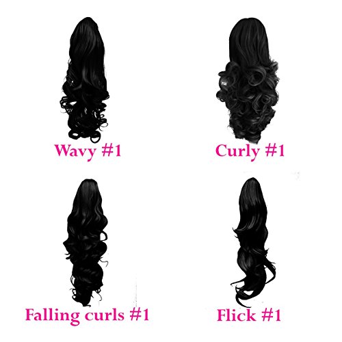 Elegant Hair - 22" Ponytail - Falling Curls - Jet Black #1 - Reversible 2 Styles in 1 - Clip in Hair Piece Extension - Claw Clip Attachment - Weight 250 grammes is available in Hair Extensions, Hairpieces
