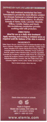 This daily treatment moisturiser has been formulated to provide the most effective solution for stressed, hormonal or irritated skins and to restore the skin's natural balance. An effective formula of Amino Acids, Lavender. Absolute, Willow, Centella Asiatica and Myrrh, this revolutionary moisturiser provides soothing relief with protection. Ideal for use as a daily skin treatment. Apply morning and evening to irritated areas as required until the balance of the skin is restored.