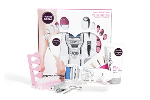11 piece gift set for beautiful feet in seconds, Contains all the essentials for a salon style home pedicure, Includes MICRO Pedi foot smoothing device, mounted with an anti-bacterial extra coarse micro-mineral roller, MICRO Pedi safely removes the roughest of skin, leaving you with soft, smooth feet instantly