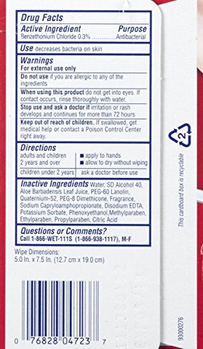 Wet ones antibacterial hand wipes kill 99.99% of germs, helping prevent the spread of bacteria; and they remove dirt, providing a better clean than hand sanitizers. They're ideal for quick clean-ups after contact with germs, sticky foods, greasy dirt, and everyday messes. 24 individually wrapped wipes - antibacterial/fresh scent