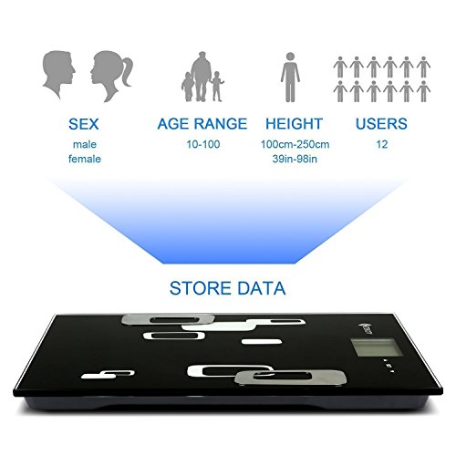 Create unique profiles with the Etekcity Body Fat Scale. The scale is able to store up to 12 programmable, individual user profiles. Each profile stores weight, gender, height, and age data so that your family members can each track their progress by this scale with ease and convenience.