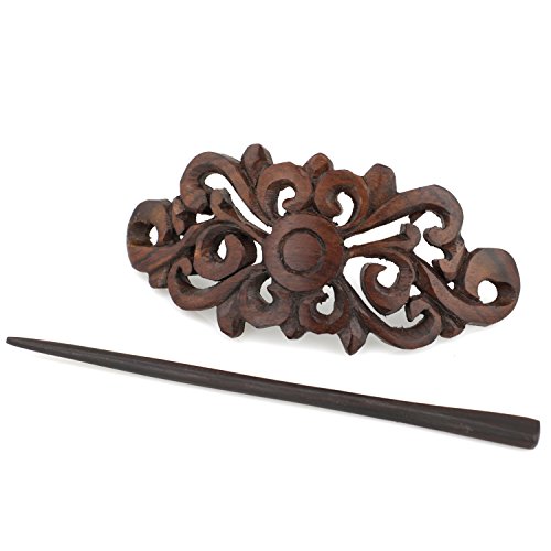 Wooden hair barrettes are a variation of the traditional hair stick of which have been in use for thousands of years and have been found in cultures of the Ancient Egyptians Romans Greeks and Japanese. You can use it to quickly fasten your hair back. Simply wind the hair in a bun like shape release the pin from one end and thread it through the base with the carved ornament on top. Once all the desired hair is nestled between push the pin back through the hole. It can be done with a tidy bun to posh perfection or by gathering the hair in fist fulls in a messy array of tendrils for an urban bohemian flare. Either way looks fabulous. It is a timeless style that boasts organic elegance. They can be used on a daily basis or for an event of elaborate luxury. This hair barrette is hand carved and polished to perfection. It's the perfefct hair accessory and will serve as a great gift for your lovely lady friends with medium to long locks.