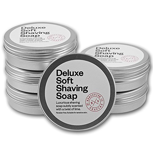 If it's a luxurious soft shaving soap, free of artificial colourings, synthetic scent and parabens you're looking for, look no further. The Executive Shaving Deluxe Soft Shaving Soap is for you. Suitable for all skin types including those with sensitive skin, this soft shaving soap lathers into a rich creamy texture. High quality ingredients including glycerine (vegetable) deliver superior razor glide and cushioning while essential oils were used for the deliciously citrusy scent of limes. Free from nasty chemicals and artificial colouring agents. The consistency of this soap is similar to putty and dough which makes lathering up with a shaving brush quick and easy. This soap is vegan, the glycerin and stearic used in the manufacturing process are vegetable sourced. Handmade the traditional way in England on behalf of the Executive Shaving Company. How to use: Wet your shaving brush in warm water, flick off excess water. Load the brush up by swirling the tips on the soap, do this for 30 seconds before painting the soap onto the bearded area. Alternatively, plop an amount equal to the size of two baked beans (no more) into a lathering up bowl, whip the soap up and paint the lather onto the bearded area. We say: Long lasting, kind to the skin, wonderfully scented and most of all expect a very rich lather that moisturises and protects the skin when you shave. This soft shaving soap has a natural off white colour and a sensational scent.