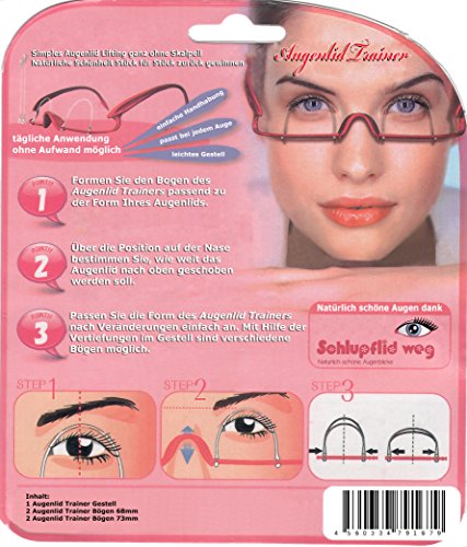 This eyelid trainer allows you to look natural and beautiful again with regular use Schlupflider. The sagging skin on the eyelid is shaped by the bows of the eyelid trainer. The sagging hanging of the skin is thus stopped. Since the skin of the loosestrife is a sluggish tissue, the skin gets used to the new shape with regular use and stays in the position you want. Try it and squeeze the skin of the slip fluid for 5-10 seconds and release. Again, you will see a short-term result, the skin remains in shape after loosening for a short time. With prolonged use, the skin remains longer in the desired shape accordingly. The eyelid trainer works on this principle.