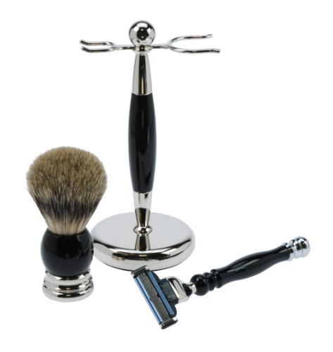 Fantasia 81023 Razor Set with 3-Blade Razor, Badger Shaving Brush, Silver-Tipped, 19 cm, Black/Chrome is available in Sets