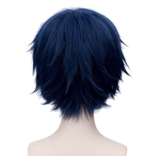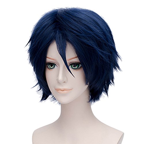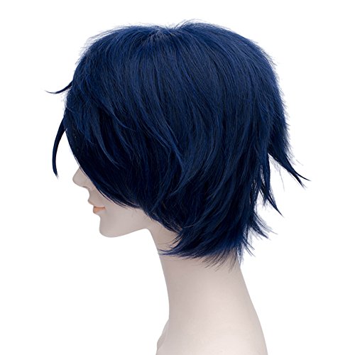 Fashion Basic Boy's Style Fancy Cosplay Wig Short Anime Hair Dark Blue +Wig Cap is available in Wigs