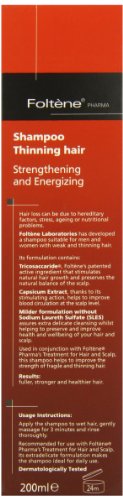 Foltene Shampoo For Thinning Hair 200ml Foltene Shampoo for Thinning Hair is a mild shampoo developed to meet the needs of men with male pattern baldness, fine and thinning hair. When used with Foltene Hair and Scalp Treatment, this shampoo will strengthen thin and fragile hair, while preserving the natural balance of the scalp. Formulated with Patented Tricosaccaride and Revitalising & Nourishing Complex to stimulate the natural re-growth and restore the condition of the scalp. Resulting in fuller, stronger and healthier hair. Promotes the growth of thicker and healthier looking hair Restores the natural balance of the scalp Strengthens fine & thinning hair