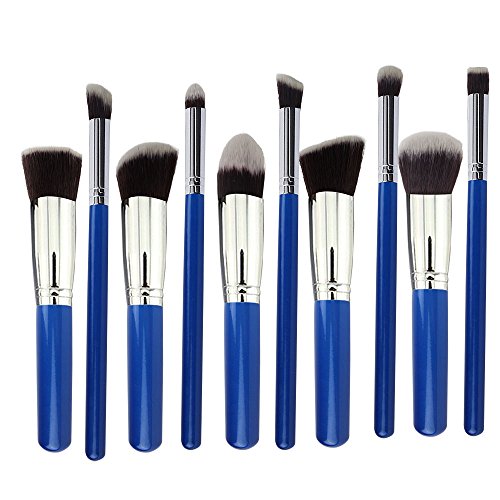 A&G®10PCS Professional Makeup Brushes Brush Cosmetic Set Make up Brushes Eyeshadow Eyebrow Shadow Powder Cosmetics Tools Kit(10pcs Blue Handle + Silver Tube) is available in Brush Sets