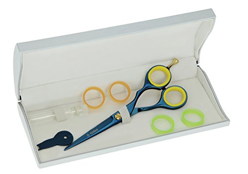 Hairdresser Scissors in Titanium. Color: blue. Made with Stainless Steel. Length: 6 Inches = mm. 150 For a Professional Use