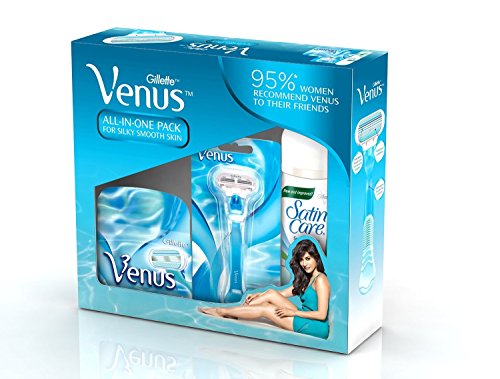 Gillette Venus Gift Pack (1 Razor 1 cartridge + 2 cartridge + 1 satin care skin gel 195 gms)