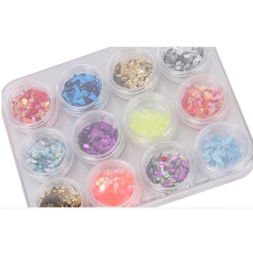 Gleader 12 Color Nail Art UV Gel Acrylic Crushed Shell Shiny Sparkle Glitter Powder Flakes Tips Decoration is available in Stickers & Decals