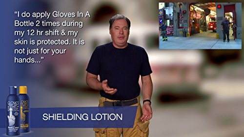 Shielding Lotion is a new technology in skin care that outperforms moisturizers and protective barrier creams by restoring the protective qualities of the outer layer of skin while enabling it to regain its natural oil and moisture balance. Instead of attempting to replace natural oils & moisture with artificial ones, Gloves In A Bottle bonds with the dead skin cells of the outermost layer of skin, creating an "invisible shield" that protects while helping to retain natural oil & moisture, allowing the skin to heal itself. Once Gloves In A Bottle completely dries, usually well under a minute, it is virtually undetectable and fragrance free. It keeps the pores clean by helping to prevent irritants, dirt, grime, pollutants, etc. from coming in, thus improving the ability of the skin to breathe and perspire naturally. Gloves In A Bottle is hypoallergenic, so it can be used anywhere on the body. It doesn't wash off but comes off naturally with exfoliating skin cells. For continued protection, just reapply every 4 to 12 hours. One 8oz bottle contains about 300 applications, producing results that are most often instantly recognizable. Gloves In A Bottle Shielding Lotion is recommended by thousands of dermatologists and many other types of doctors.