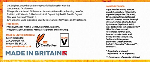 Verified Purchase This review is from: Green Keratin Vitamin C Serum Concentrate - Vitamin C Serum For Your Face, Hyaluronic Acid, Ecosilk, Organic Jojoba and Vitamin E, 87% Organic, Vegan, 50ml (Personal Care)