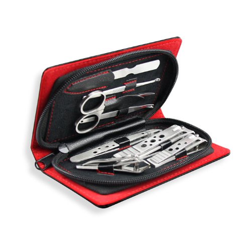 Consists of: scissors, 3 nail clippers, nail file, tweezers, cuticle trimmer and ear cleaner.