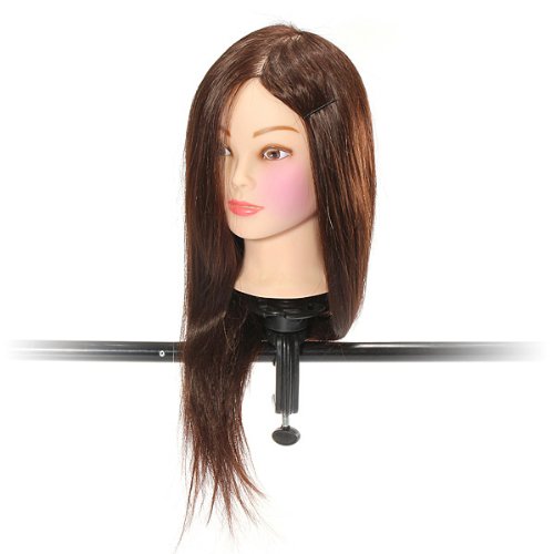 18" Hairdressing Salon Training Head Real 50% Human Long Brown Remy Hair Clamp is available in Training Heads