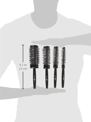 Contains 4 heat retaining radial brushes presented in a PVC zip-up bag. CONTAINS BRUSHES: Head Jog 12 (15mm), Head Jog 13 (25mm), Head Jog 15 (35mm) and Head Jog 16 (45mm).