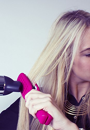 Straight 'N' Go is the amazing new hair straightening brush that makes straightening your hair at home a breeze. It's dual-sided ceramic plates work with your hairdryer heat to ensure smooth, sleek, straightening performance. The vented design allows air to circulate freely through the brush for fast drying, whilst the interlocking row of bristles gently slide through your hair creating a shiny, silky appearance. Straight 'N' Go's comfortable, cool-to-touch handle is easy to grip, giving you more control as you smooth and straighten your hair whilst blow drying. You can even use it with your heated straighteners too to achieve a smoother result without kinks! BONUS - Hand travel pouch and lightweight design means you can take your SNG wherever you go! Available in Hot Pink or Sleek Black