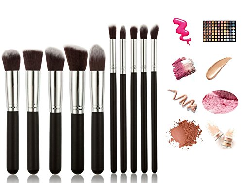 Verified Purchase This review is from: Huewind 10pcs Premium Synthetic Kabuki Makeup Brush Set Cosmetics Foundation Blending Blush Eyeliner Face Powder Brush Makeup Brush Kit (Black/Silver) (Misc.)
