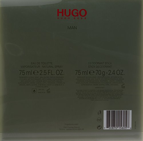 Hugo Boss Man Eau de Toilette Spray is an aromatic andfresh fragrance for men. Classed as a spicy, green, fruity and woodyscent.This Hugo Man set includes:Eau de Toilette Spray 75ml and Deodorant Stick 75ml.