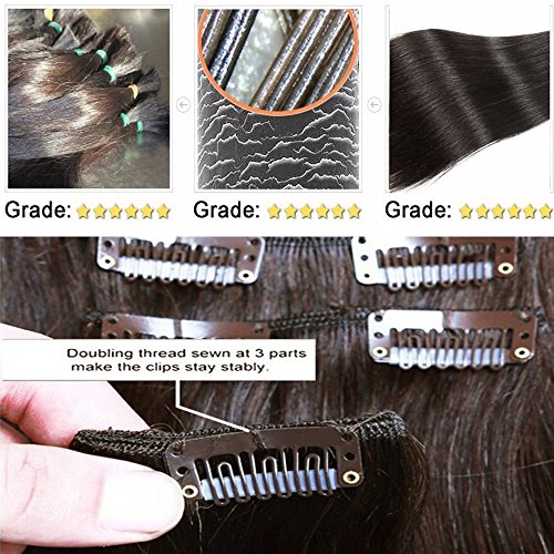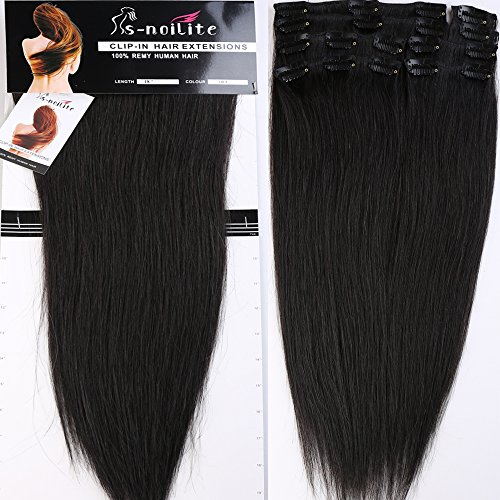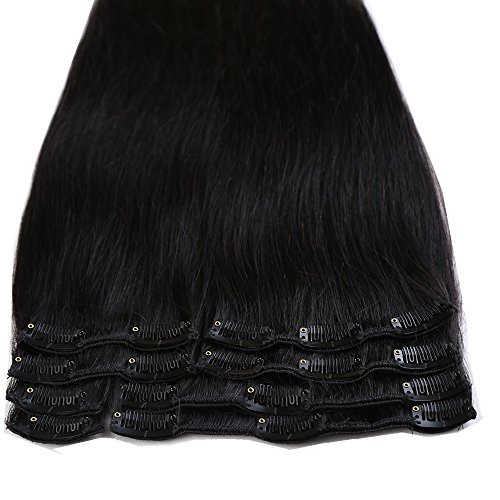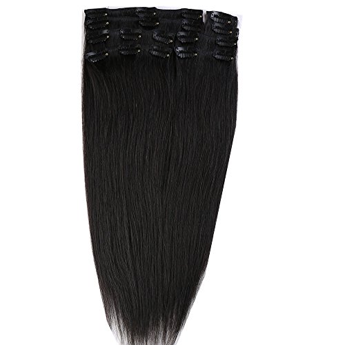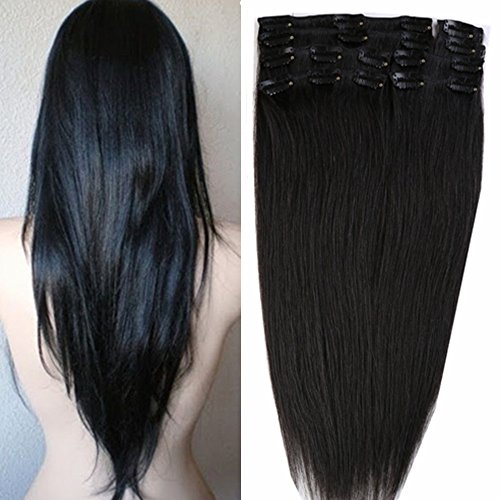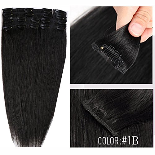 Clip in 100% Real Remy Human Hair Extensions Silky Straight Full Head 8 Pieces (18"-100g,#1B Natural Black) is available in Hair Extensions