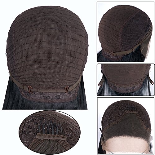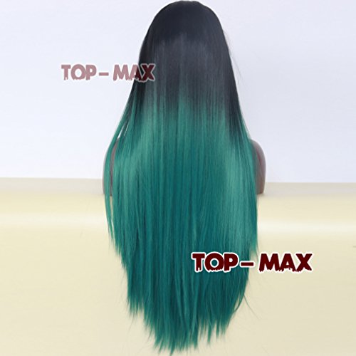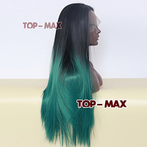 24 Inches Women Straight Black Mixed Dark Green Heat Resistant Lace Front Wigs is available in Wigs