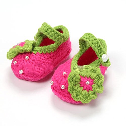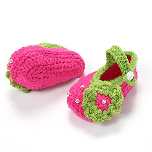 1 Pair Baby Infant Shoes Handmade Wool Knitted Crochet Newborn Bootee Flowers Shoes for 0-12 Months Baby Rosy 12 Yard is available in Foot Soaks
