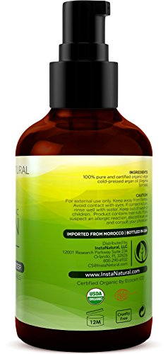 InstaNatural Organic Argan Oil - For Hair, Face, Skin & Body - 100% Pure & Certified Organic Cold Pressed Argan Oil of Morocco - For Acne, Nails, Dry Scalp, Split Ends, Stretch Marks & More - 4 OZ is available in Oils