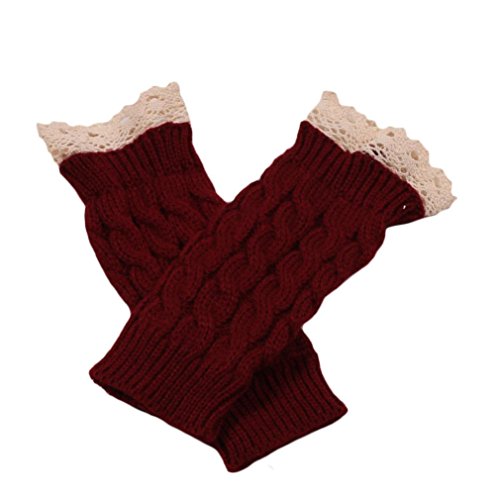 Internet Fingerless Lace Knitted Fringe Warm Gloves (Dark Red) is available in Moisturising Gloves