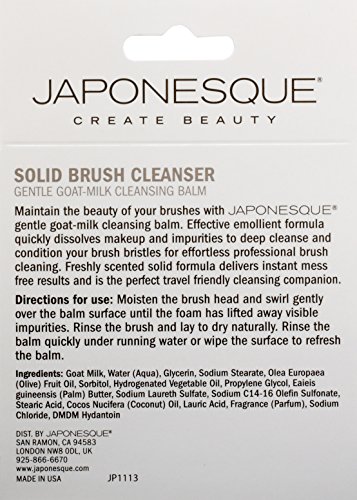 Maintain the beauty of your brushes with JAPONESQUE's gentle goat-milk cleansing balm. Effective emollient formula quickly dissolves make-up and impurities to deep cleanse and condition your brush bristles for effortless professional brush cleaning. Freshly scented solid formula delivers instant mess-free results and is the perfect travel-friendly cleansing companion