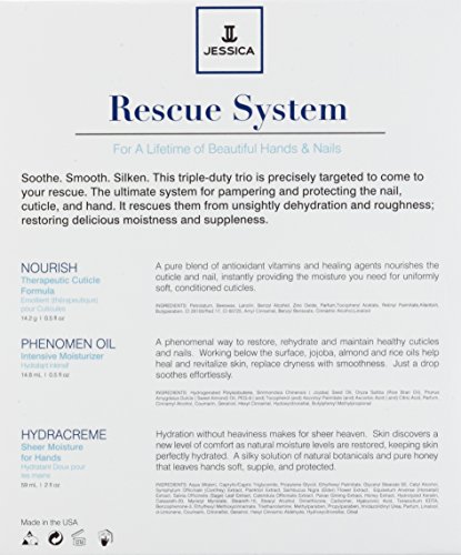 I love Jessica products, they are really good value and excellent quality. I have very difficult nails and I find they are so much more improved when I follow the Jessica regime, especially in winter. These items are staples I keep in my nail care kit. The phenomen oil itself is extremely expensive on it's own and it's unusual to find a full size one in a kit such as this which makes it very good value for money. The oil is excellent for use not just on conditioning nails but a little can also be used on the back of dry hands rubbed in with handcream. It can also be used on dry areas such as elbows and knees. You only need a tiny little bit and it has a pleasant smell. The handcream is farily thin but rubs in well without leaving a greasy feeling and is nice and light on the hands. The cuticle cream I love. Apart from being a nice pink colour, again it has a nice smell and you don't need very much. Even though you use the oil, you need the cream as well. The cream conditions...