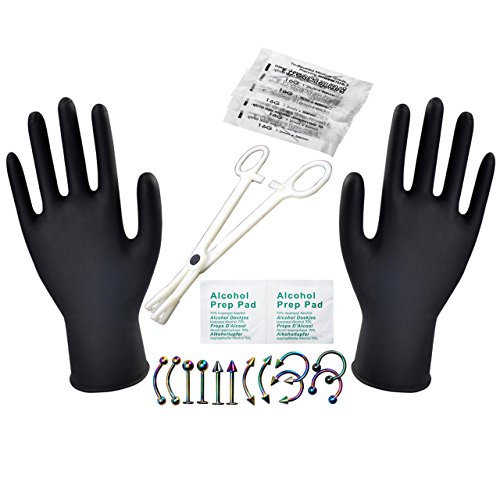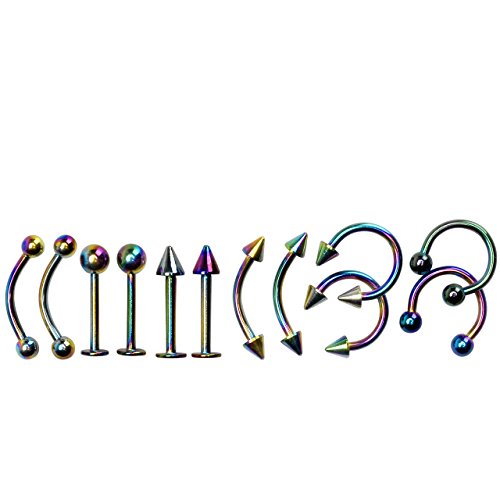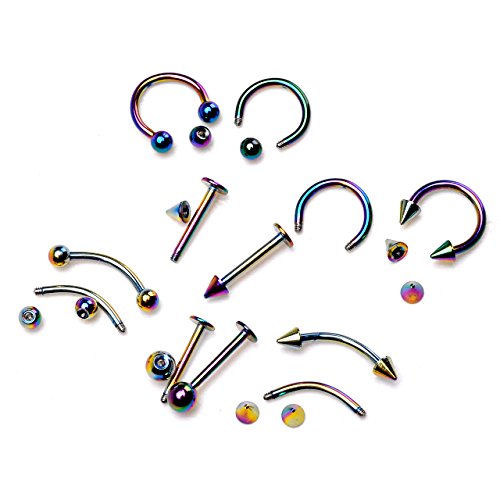 JOVIVI Body Piercing Kit 16G Stainless Steel Piercing Kit for Belly Button,Ear,Tongue,Nipple,Lip,Eyebrow,Nose, 16 Gauge - 22 Pieces (Rainbow) is available in Sets & Kits