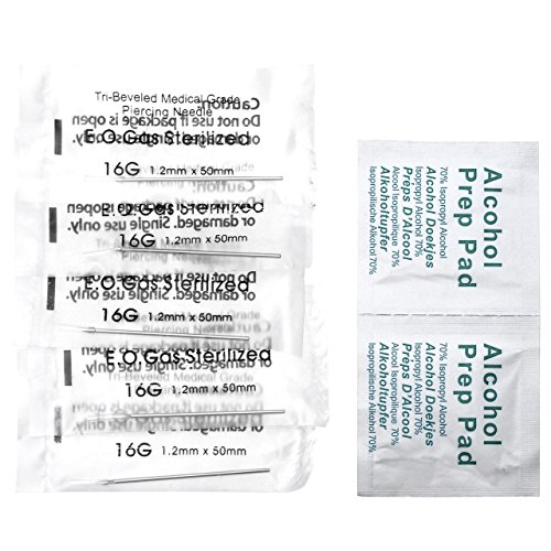 5 Piercing Needles 16 Gauges (100% Sterilized using ethylene oxide (EO) gas.)