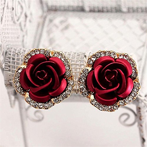 No additional information available for JaneDream Womens Delicate Rose Flower Rhinestone Ear Stud Earrings Red