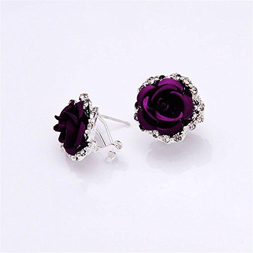 JaneDream Womens Delicate Rose Flower Rhinestone Ear Stud Earrings Purple is available in Make-up Sets