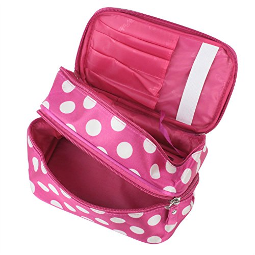 Verified Purchase This review is from: Japace® High Premium Fashion Design Multifuctional Womens Ladies Girls Cute Polka Dots Pattern Double Layer Dual Zipper Cosmetic Bag Toiletry Bag Makeup Bag Hand Case Bag Tool Storage -Style 1 (Misc.)