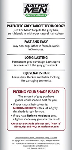 Just For Men Original Hair Colour Medium Brown is the traditional way to target 100% of your greys! It's a quick five minute application with results that lasts until the greys grow out.
