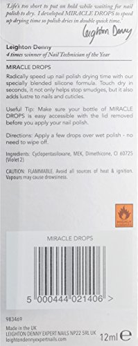 A blend of volatile silicones specially formulated to radically speed up drying time. Touch dry in seconds. Miracle Drops also helps stop smudging, while adding lustre to both nails and cuticles. 12ml