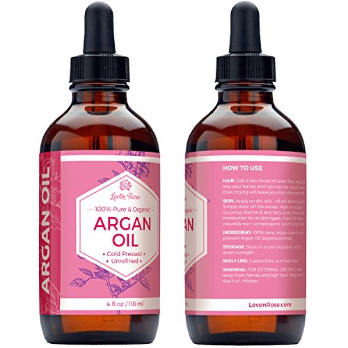 Leven Rose Virgin Argan Oil - Cold Pressed, 100% Organic for Hair, Skin, Face & Nails - Best Moroccan Anti-aging, Anti-wrinkle, Soaks in Quickly - Prevents Frizz & Increases Natural Hair Shine & Silkiness - Helps with Eczema, Acne, Dry Patches - Great As Natural Beard Oil and Conditioner - Moisturizer for Dry Skin & Cuticles - 100% Pure Oil is available in Hair Oils