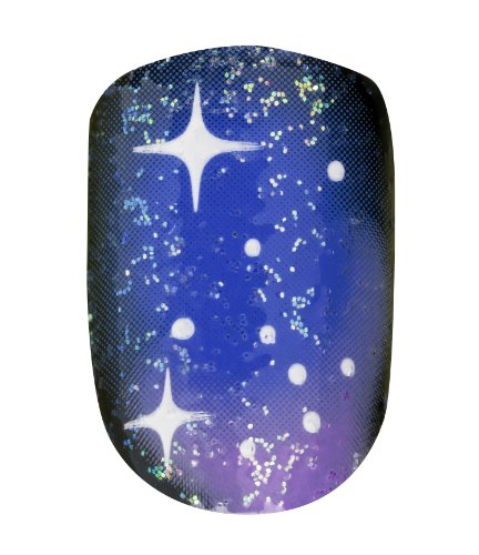 Elegant Touch false nails designed by Little Mix. Perrie's nails feature a gorgeous cosmic galaxy design. The nails are press-on and come with adhesive tabs.