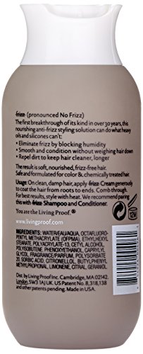 Verified Purchase This review is from: Living Proof no Frizz nourishing styling - hair creams (Unisex, Anti-frizz, Moisturizing, Nutrition, Water/Eau/Aqua, Octafluoropentyl Methacrylate (OFPMA), Ethylhexyl Stearate, Polyacrylate-13, Cetyl A, On clean, damp hair, apply No Frizz Nourishing Cream generously from roots to ends. Comb through. Fo) (Personal Care)