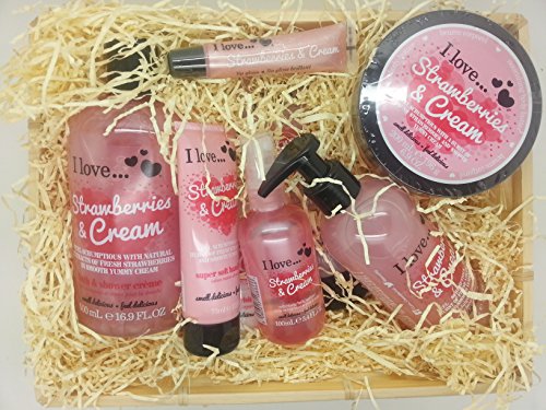 I Love... Strawberries & Cream 7 Piece Luxury Pamper Gift Basket Ideal Present is available in Gift Sets