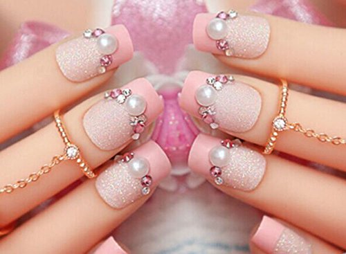 Set of 24 Lovely Venetian pearl Style Makeup Set DIY 3D Design False Nails, Pink is available in Templates