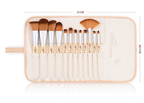 Luvia Cosmetics - Bamboo's Root - Make up brush set made of high quality Bamboo handle and original Taklon Hair - 12 Brushes including caringly designed linen pouch - Vegan - Also appropriated for people with pet hair allergy - Christmas and Advent Presents / Gift for Her is available in Brush Sets