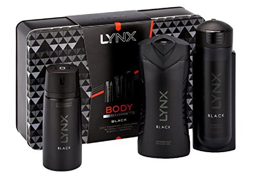 The Lynx Black Tin Gift Set contains full size product, Lynx 150ml Bodyspray, Lynx 250ml Showergel & Lynx 300ml Shampoo. All with the subtle fragrance of Lynx Black. Beautifully presented in a classic Lynx Gift Tin making it the perfect gift this Christmas.