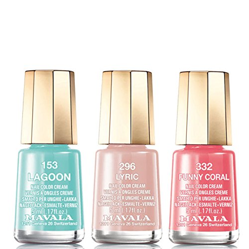 Mavala Editors Picks Trio features three stunning shades that are perfect for giving your nails a girly treat this season. Each varnish comes in a cute, mini sized bottle and with a smooth and even application, these polishes are ideal for adding a pop of colour to your look. -SAThe set contains: Lyric Funny coral Lagoon