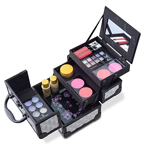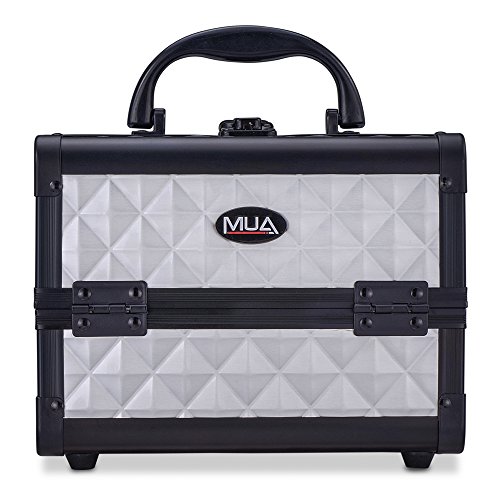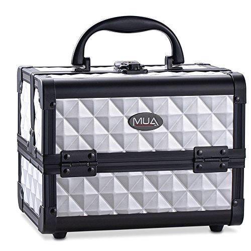 MUA LIMITED Cosmetic Aluminum Train Case, Compact Makeup Storage Organiser, Beauty Box with Lock and Key, Silver with Black Trim is available in Cases & Holders