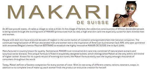 Makari products are made from all natural plant extracts from the earth, and contain properties from the sea. The Makari line has no bleach, no chemicals and no hydroquinone, which is known to be harmful to the skin. By using such ingredients as algae, aloe vera, caviar, citric acid, lemon, malic acid, mulberry, salicylic acid, seaweed and vitamin C, they naturally heal and clear the skin.