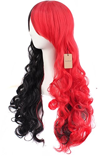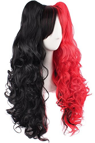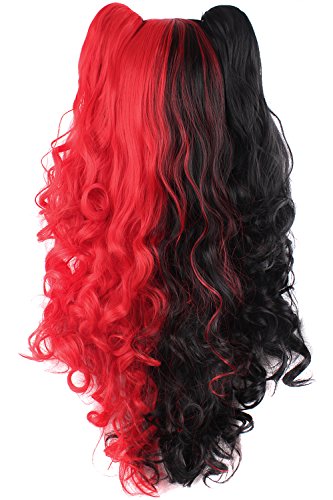 MapofBeauty Multi-color Lolita Long Curly Clip on Ponytails Cosplay Wig (Black/ Red) is available in Wigs