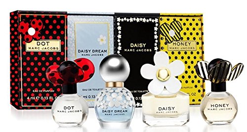 For a floral and fruity fragrance for the ladies, this Honey set is for you. It was launched in 2013, with top notes of pear and mandarin orange while the middle notes are honeysuckle and peach. The base is of honey and vanilla resulting in white floral and sweet main accords. Includes: 4 x 4ml Marc Jacobs Daisy EDT
